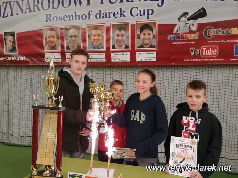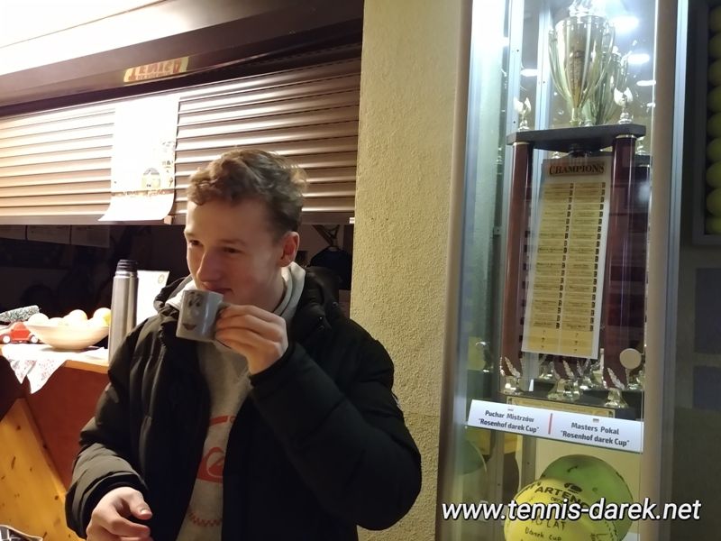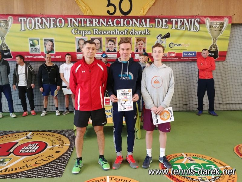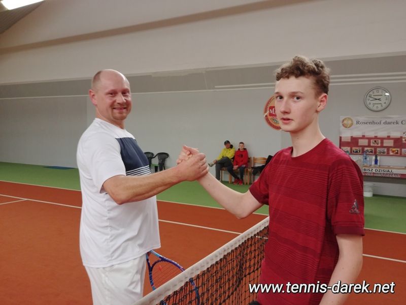W meczu półfinałowym pokonał Czeskiego doświadczonego zawodnika Drahoś Śipek Frydlant 4/6 6/4 10/9 ! to był prawdziwy i dramatyczny bój. W meczu finałowym po kreczu czterokrotnego tryumfatora RdC Krzysztofa Burbo Bogatynia - Kornelowi przyszło zmierzyć się z synem Krzyśka jedenastoletnim Goranem - tu historia była już łatwiejsza i pierwszy tytuł Kornela stał się faktem ! Gratulacje Kornel.