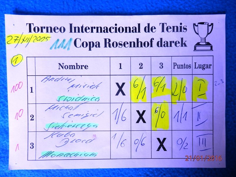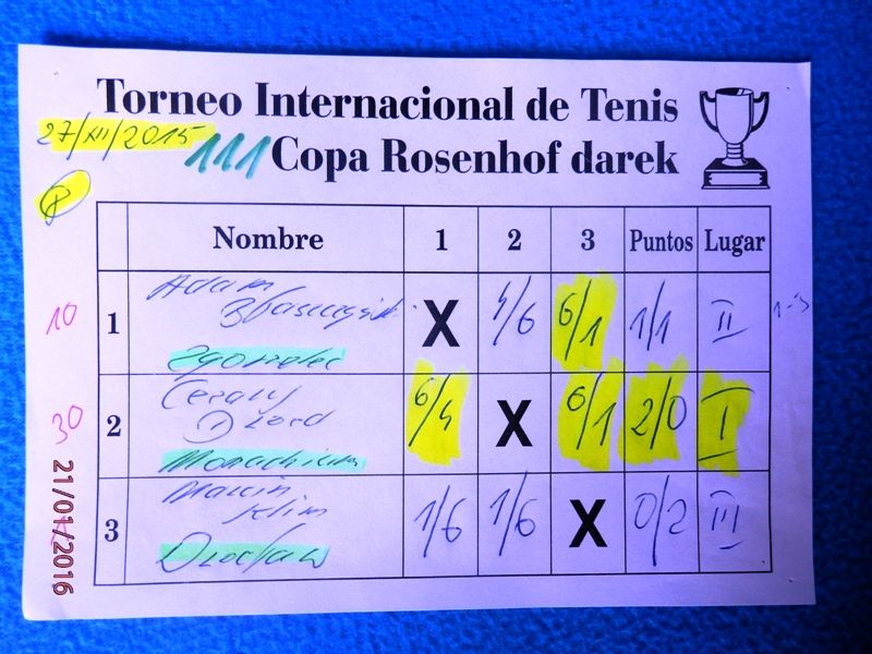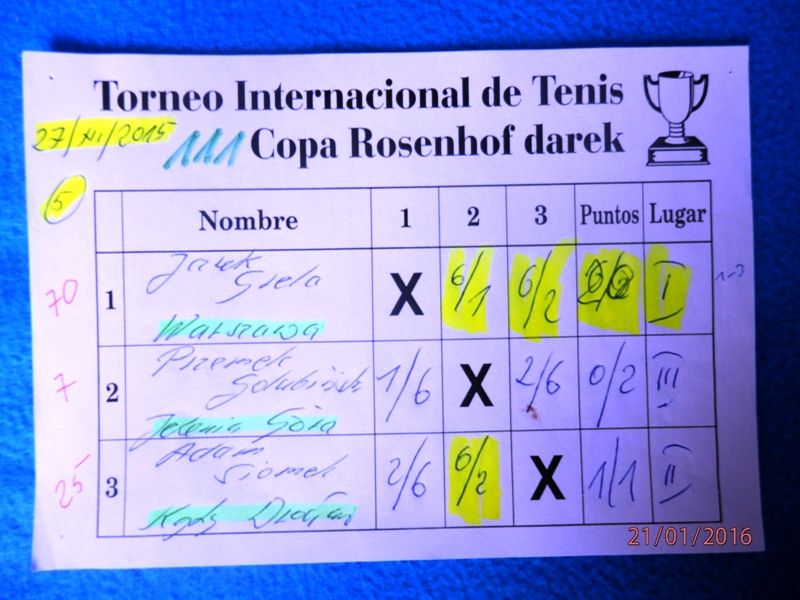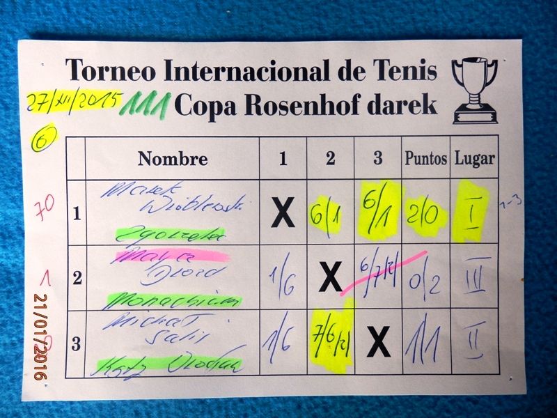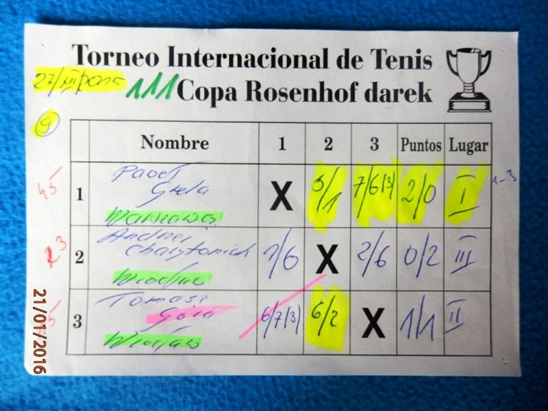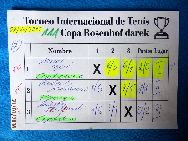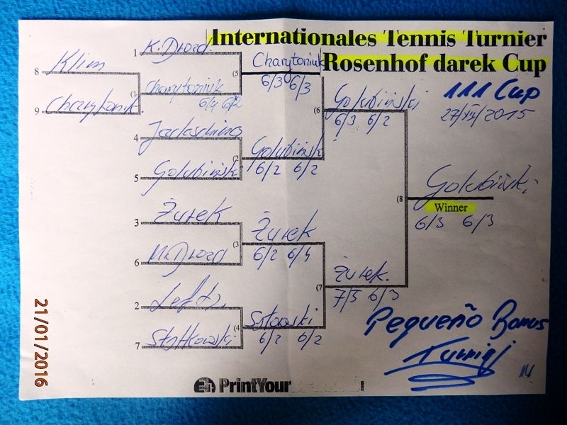 111 Międzynarodowy Turniej Tenisa ROSENHOF darek CUP, Görlitz 27 Grudnia 2015 - Toooo potężne uderzenie na koniec tenisowego roku 2015 ! Aż siedmioro Championów wzięło udział w 111 Cup a ponadto wielu mocnych graczy, w roli głównej z Karol Duś z Częstochowy. Który zapowiadany był jako Przyszły / Nowy Champion i taaaak też się stało.