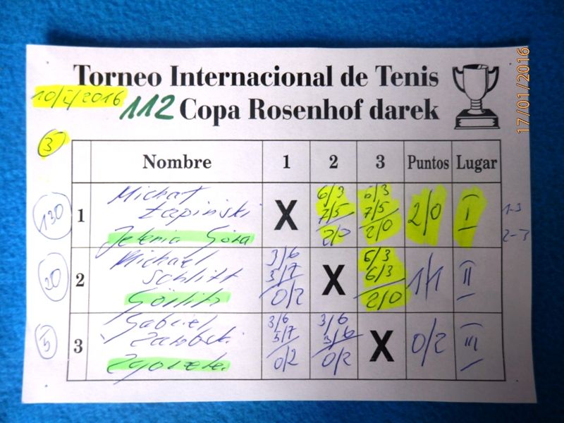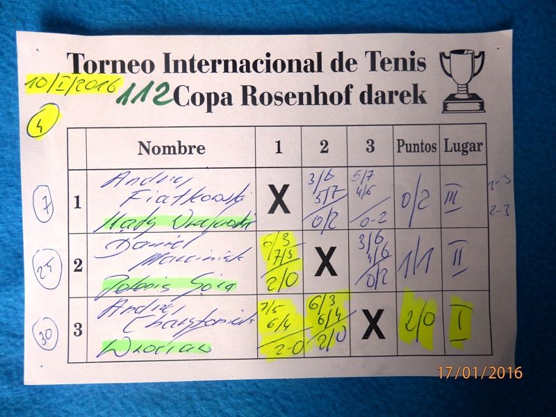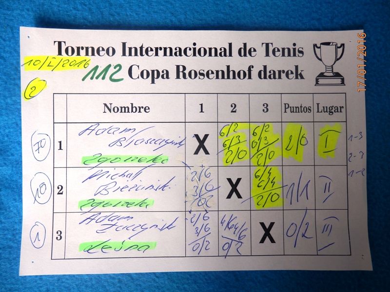 112 Międzynarodowy Turniej Tenisa ROSENHOF darek CUP, Görlitz 10 Stycznia 2016 - Po prostu "kameralnie" i znowu z miłą niespodzianka dla mnie ale i też dla samych zawodników !