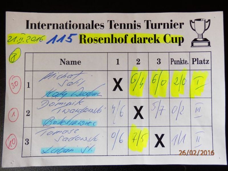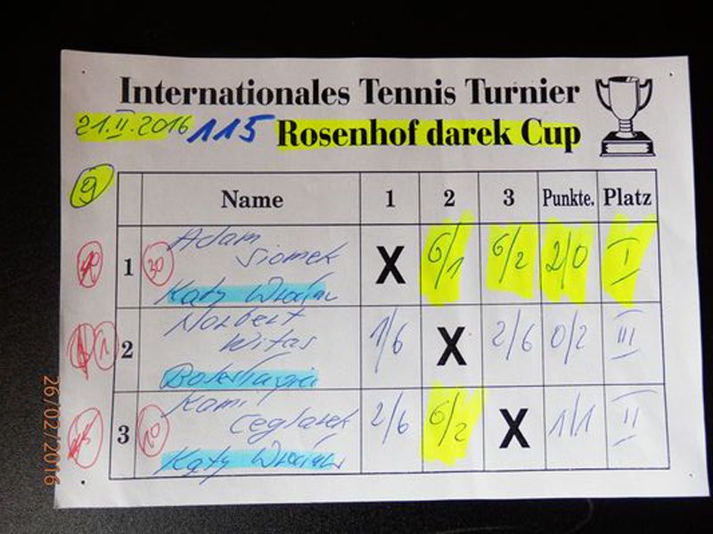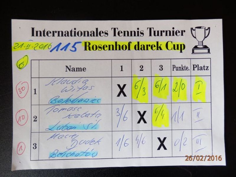 115 Międzynarodowy Turniej Tenisa ROSENHOF darek CUP, Görlitz 21 Luty 2016 - Mieliśmy istną Galę Tenisową, wielu nowych ciekawych zawodników - z bardzo daleka i bardzo wielkimi umiejętnościami.