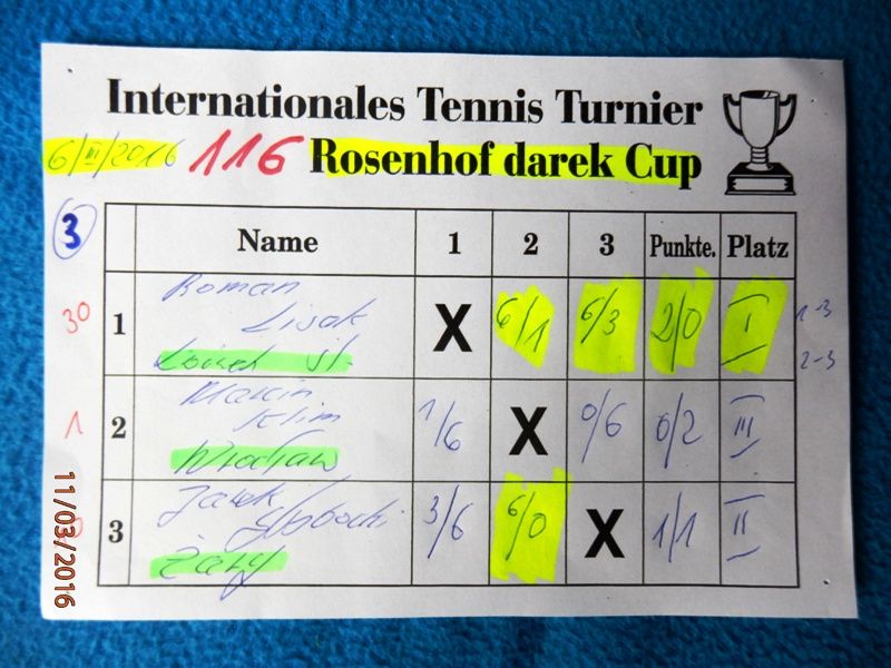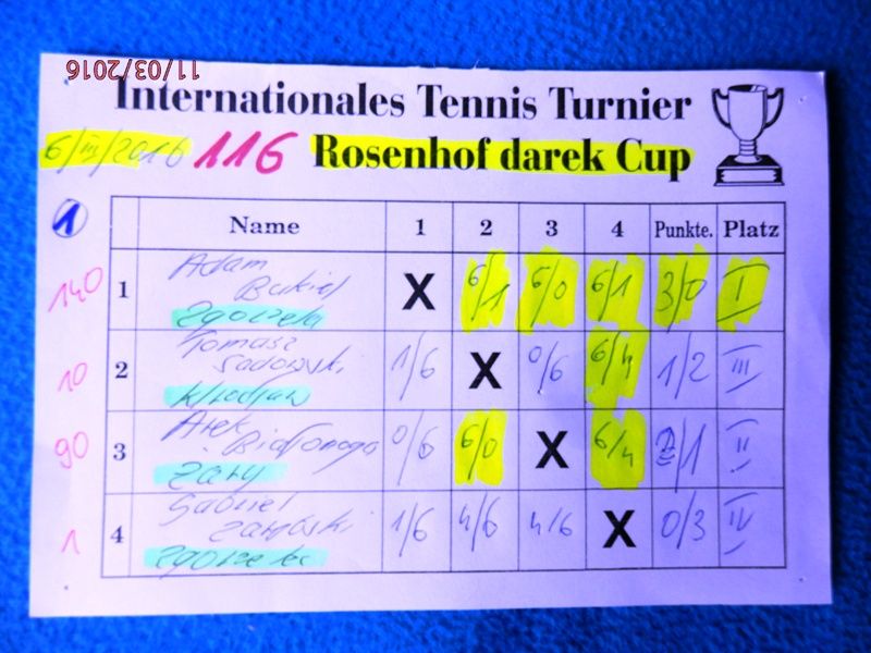 116 Międzynarodowy Turniej Tenisa ROSENHOF darek CUP, Görlitz 06 Marzec 2016 - To było przedstawienie jednego "aktora" z jedną sensacją i wieloma ciekawymi meczami.