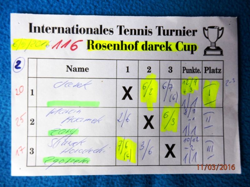 Nadmienię iż w 9-cio letniej historii turnieju Rosenhof darek Cup 2007/2016 - w turnieju przewinęło się na dzień 116 Cup - dokładnie dokładnie 333 Zawodników, pochodzących z 6 Krajów i reprezentujących 73 Miasta !!! To się nazywa WIELKA TRADYCJA !