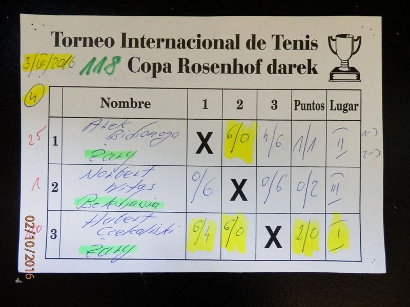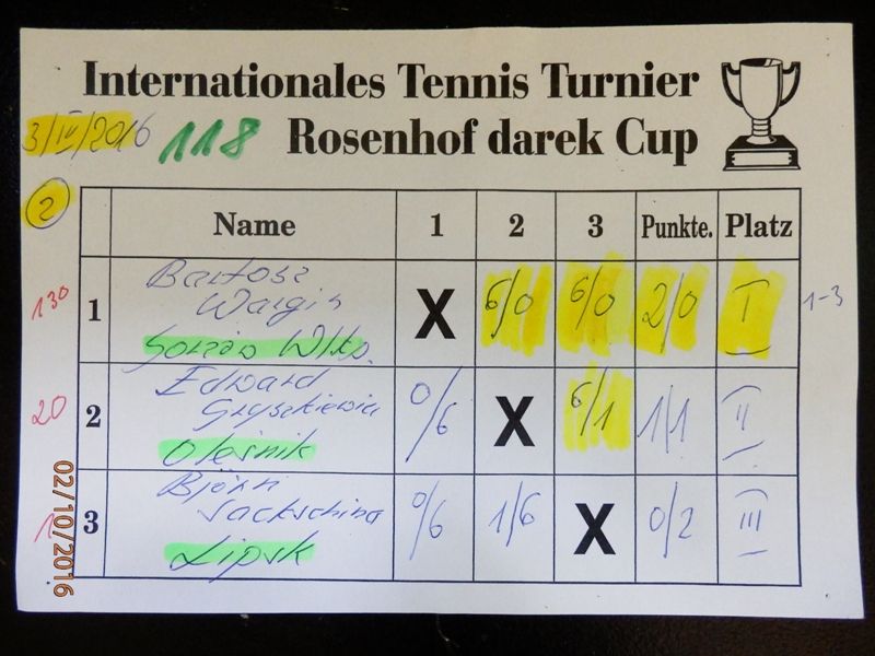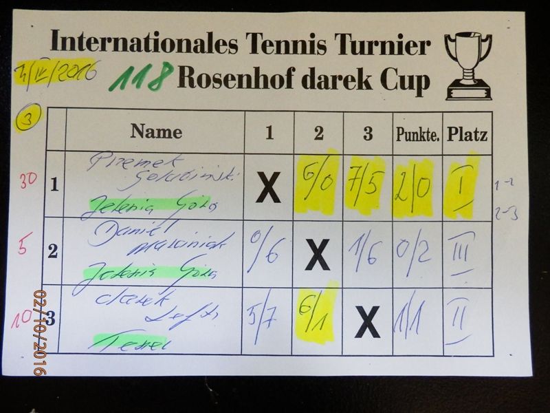 Najpierw 23 Października 2016 na 119 Turniej Rosenhof darek Cup oraz 30 Października 2016 na 120 Rosenhof darek Cup……..